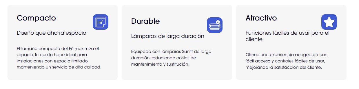Diseñado para quienes buscan resultados sencillos sin sacrificar el lujo, el Ultrasun E6 reúne funciones confiables de bronceado y bienestar en un diseño atemporal.