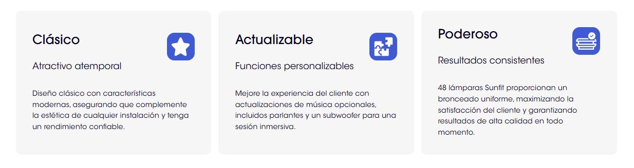 Cuando el estilo se une al rendimiento, obtienes el Ultrasun E7. Esta elegante unidad ofrece funciones avanzadas y mejoras sofisticadas como Bluetooth, en un diseño que realza cada sesión.