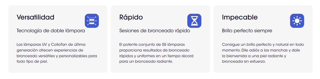 Experimente la máxima expresión del bronceado sin sol con Ultrasun Q18. Diseñada para un alto rendimiento y un lujo sin esfuerzo, esta cama de bronceado de vanguardia ofrece resultados rápidos e impecables que le dejarán radiante. Disfrute de la eficiencia sin comprometer la calidad.